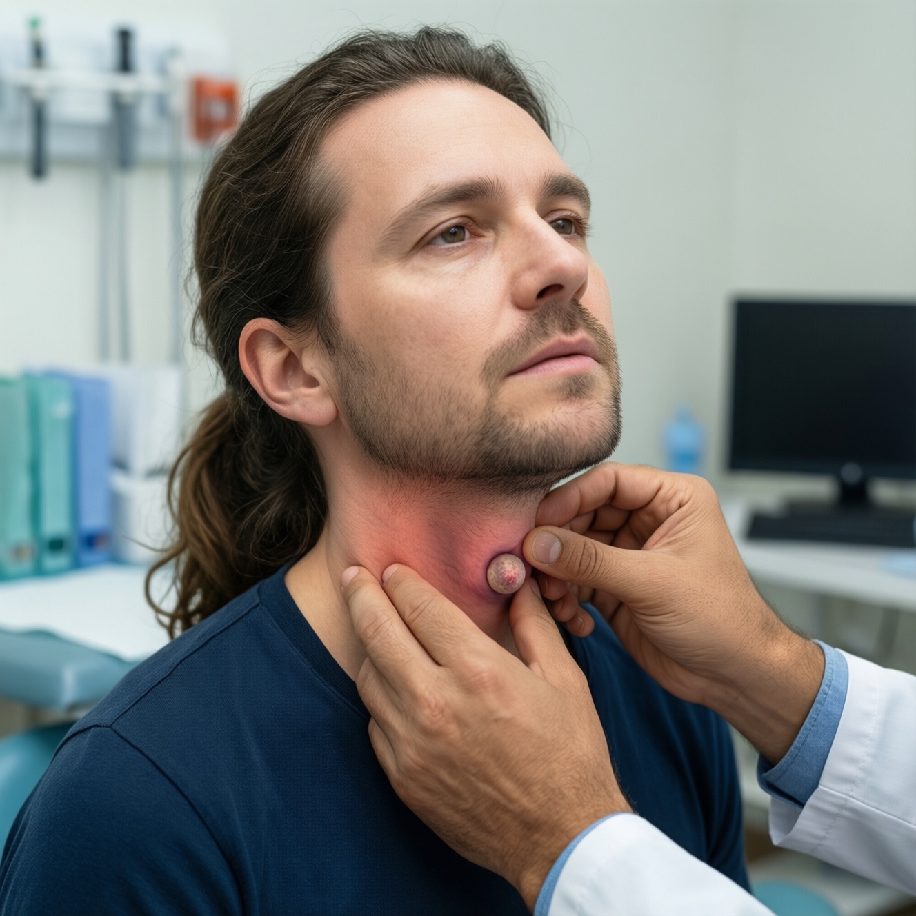 Сценарий: вы заметили "шарик"/асимметрию на шее или врач пропальпировал узел; появились осиплость, затруднение глотания, ощущение давления в шее.